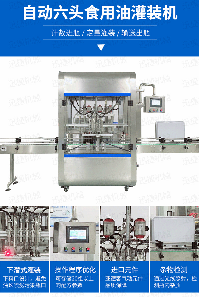 6、采用下潛式灌裝,在桶口以內(nèi)約5-8mm 處進(jìn)行灌裝,避免了灌裝速度快產(chǎn)生細(xì)小油珠噴濺污染瓶口的現(xiàn)象產(chǎn)生。配合多段式快慢速灌裝,可以保障高速灌裝時(shí)全速灌裝,又可有效解決氣壓過高快速灌裝時(shí)泡沫溢瓶現(xiàn)象,自我保護(hù)更安全,穩(wěn)定,延長設(shè)備使用壽命。