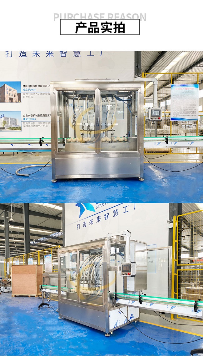 迅捷機械的自流式灌裝機 原理通過灌裝嘴的開啟閉合時間來控制灌裝量,所以該液體灌裝機需要確保物料在通過灌裝嘴的時候流速均衡,灌裝嘴開啟閉合時間穩定,這樣才能灌裝時計量準確,通常通過該款灌裝形式的灌裝精度為98%-99%的液體灌裝機優點是設備成本低、灌裝范圍大、操作簡便,缺點是生產速度低、灌裝誤差較其他灌裝方式高?;蛘吣部梢詠韽S試機,更好的確定您的物料適合哪款設備,迅捷機械歡迎您的到訪。